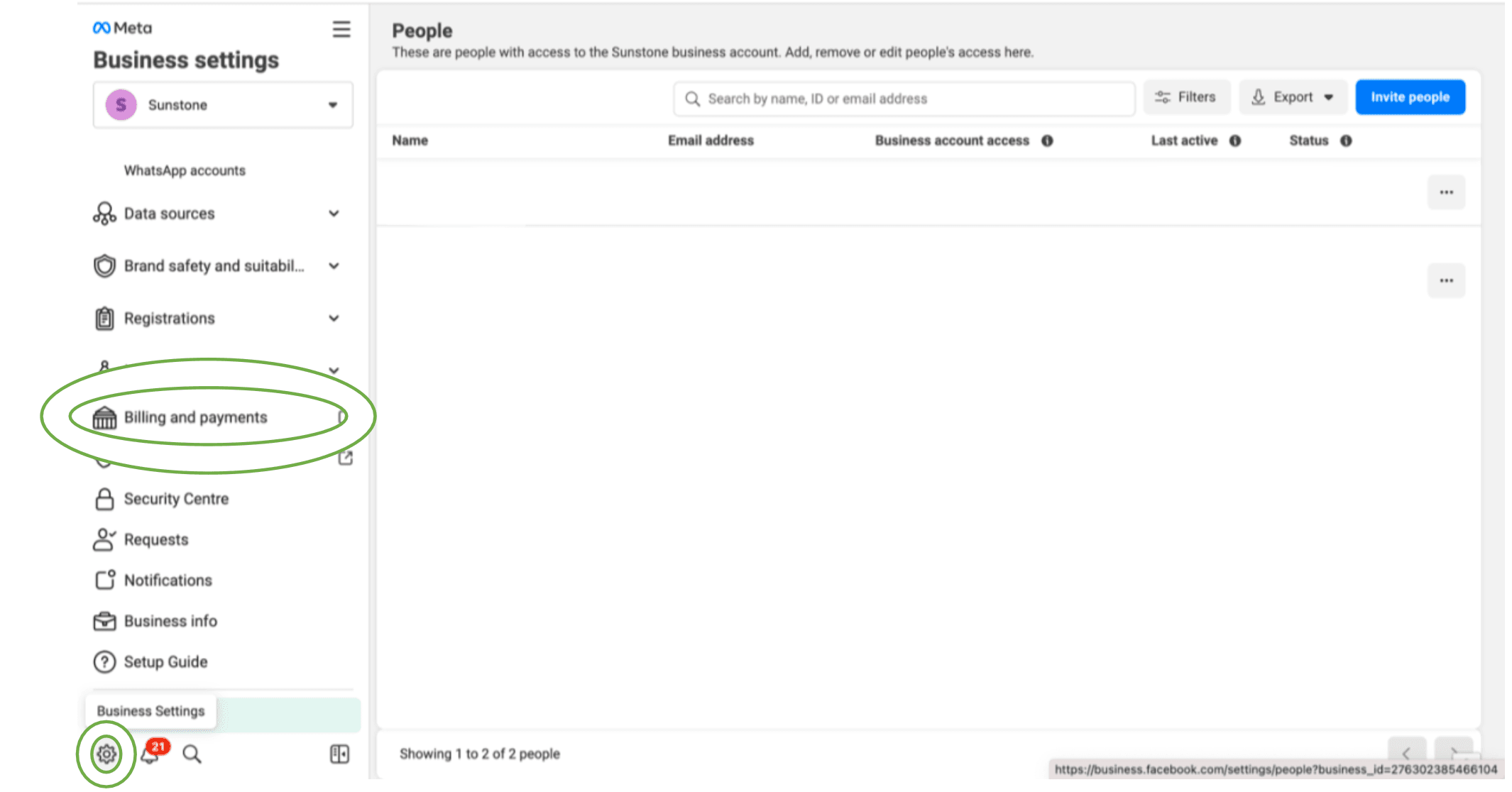 3. Go to Business Setting and click on Billings and Payments.