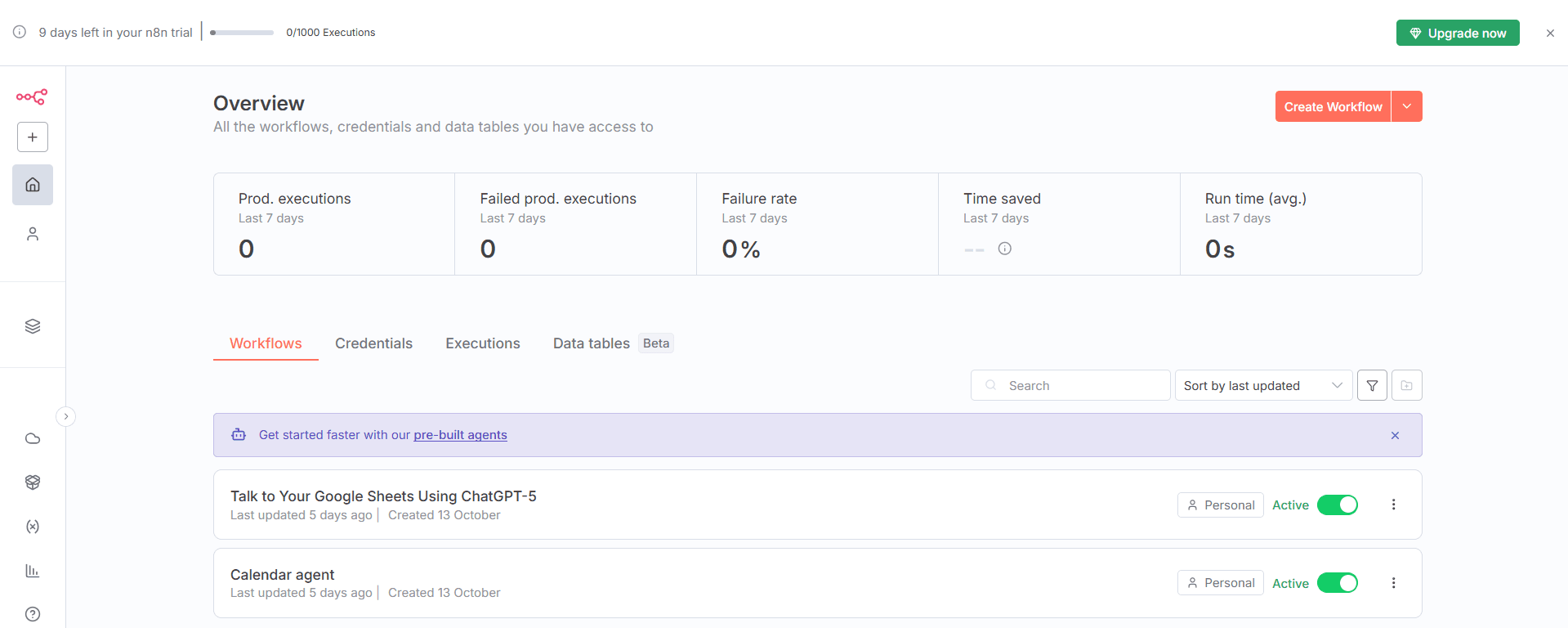 Store all tokens and keys in n8n credentials, not in plain text fields.Error alerts