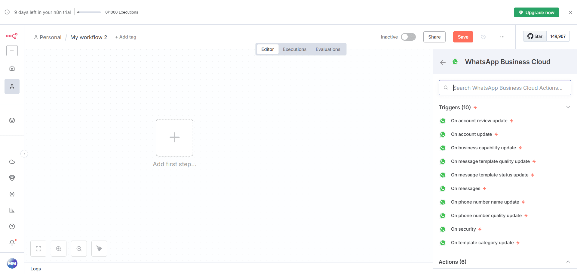 Rename the node to WhatsApp Trigger. We will reference this name later.