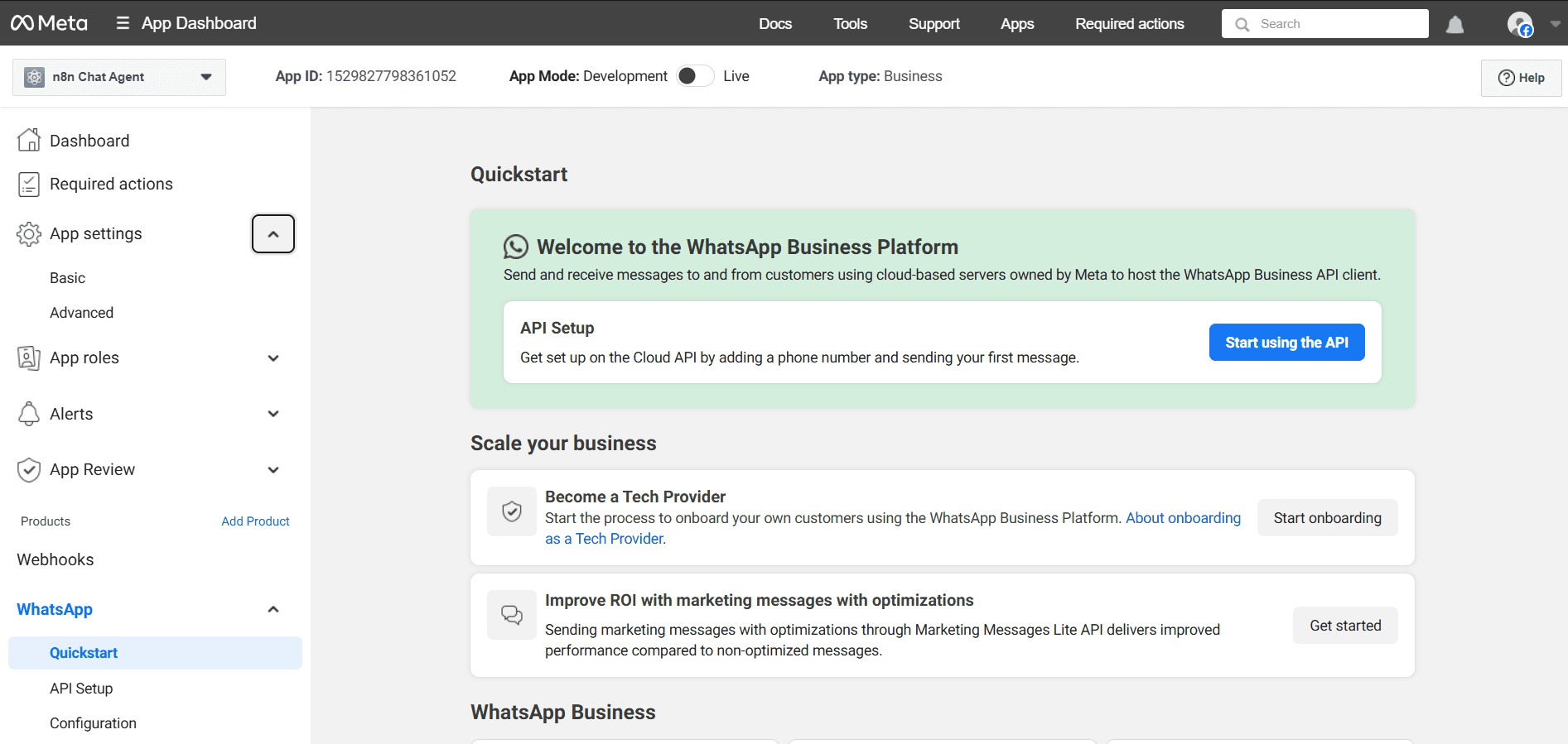 A Facebook account with access to business.facebook.com and permission to create an app.WhatsApp Business Cloud