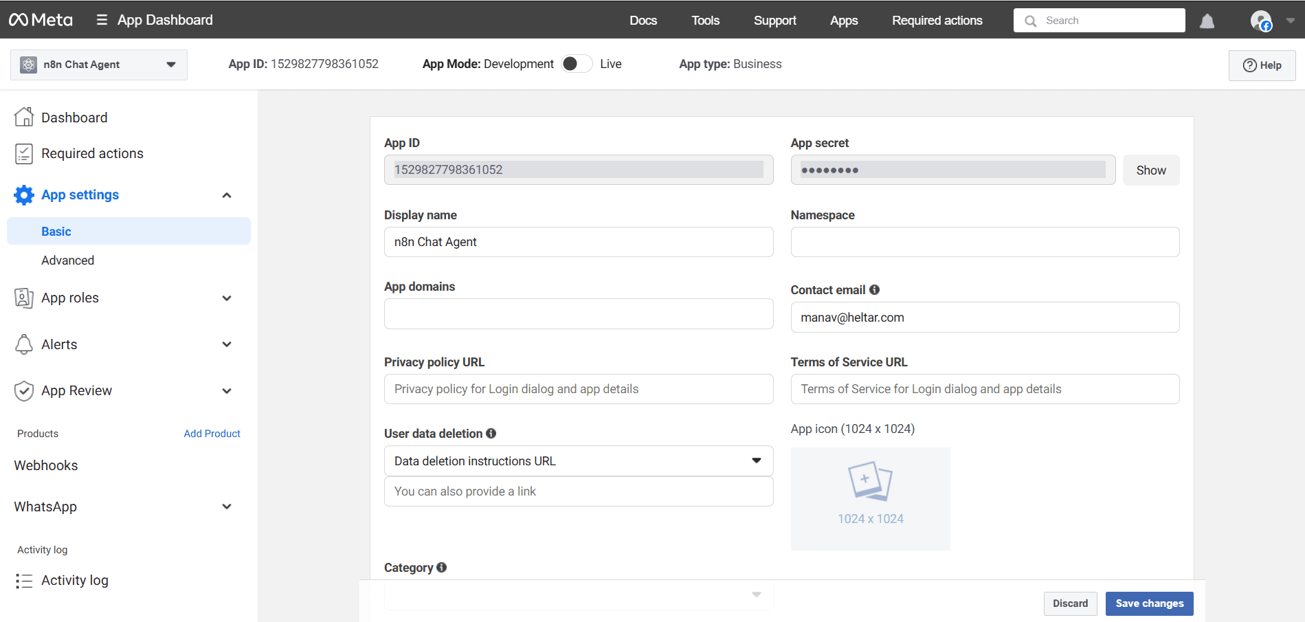 Copy WhatsApp Business Account ID from the same page to n8n Business account ID.