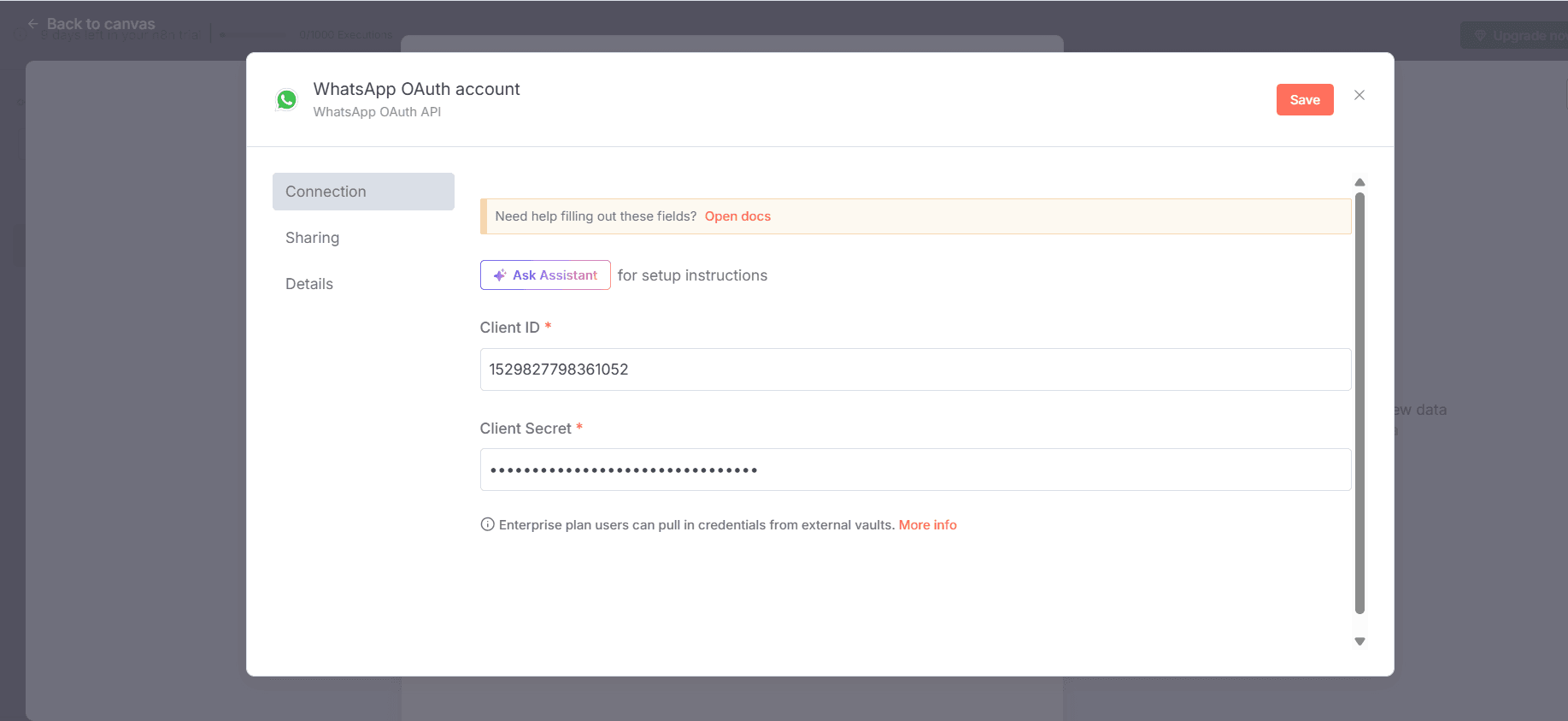 Save the workflow with a clear name, for example: “WhatsApp Chatbot”.