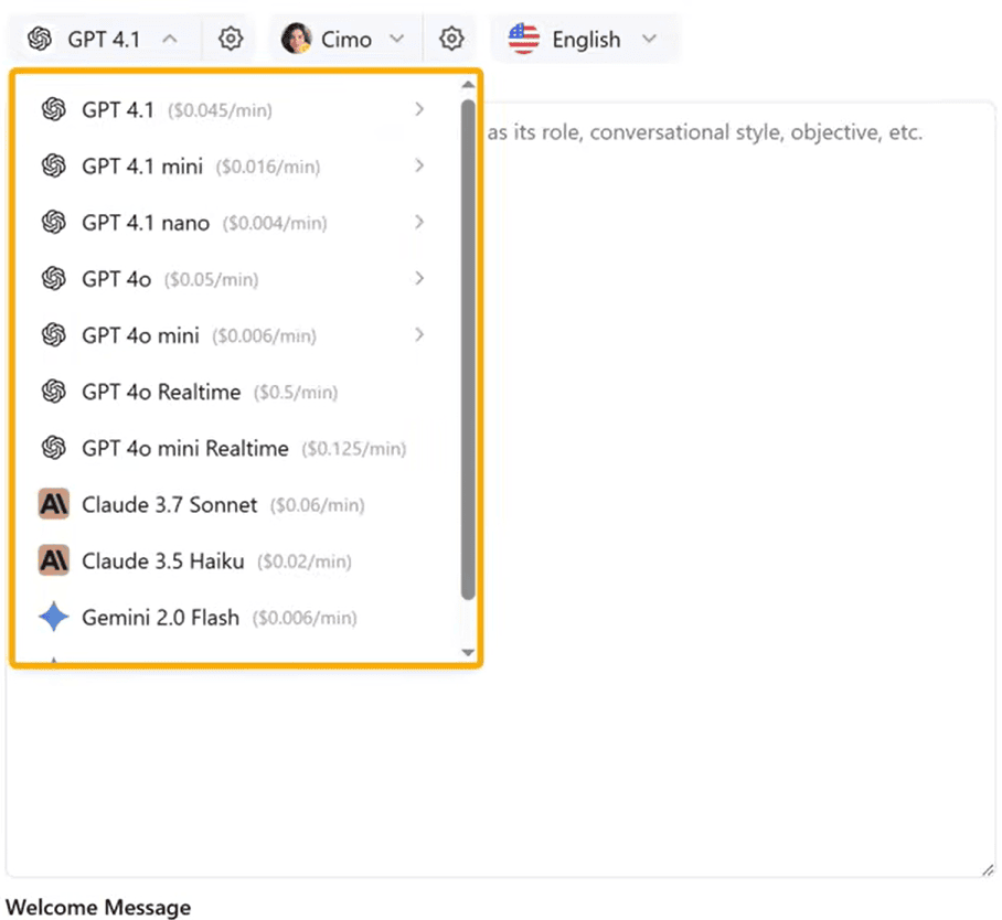 Recommendation: Choose GPT-4o Mini. It's fast, cost-effective ($0.15/$0.60 per million tokens), and handles most business conversations excellently. Check out the pricing for Open AI API and Anthropic API here.