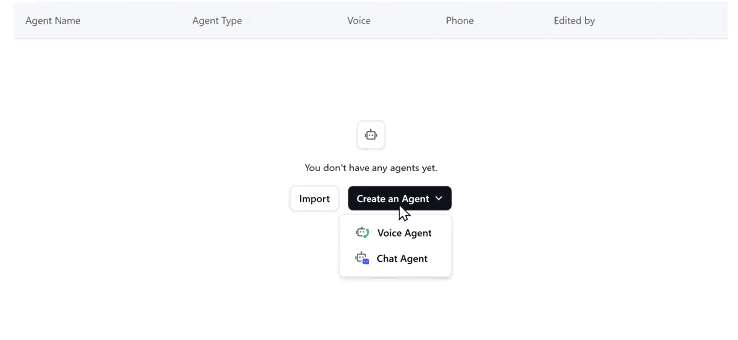- From the Retell AI dashboard, click "Create Agent".