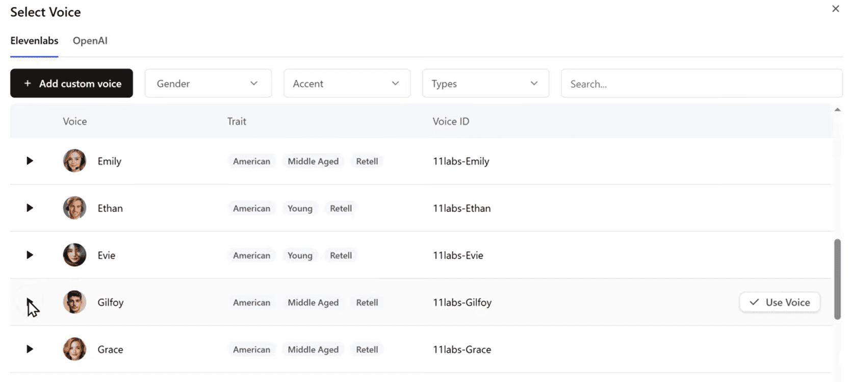 This is how your agent will sound to callers. Retell AI offers a variety of voices with different: