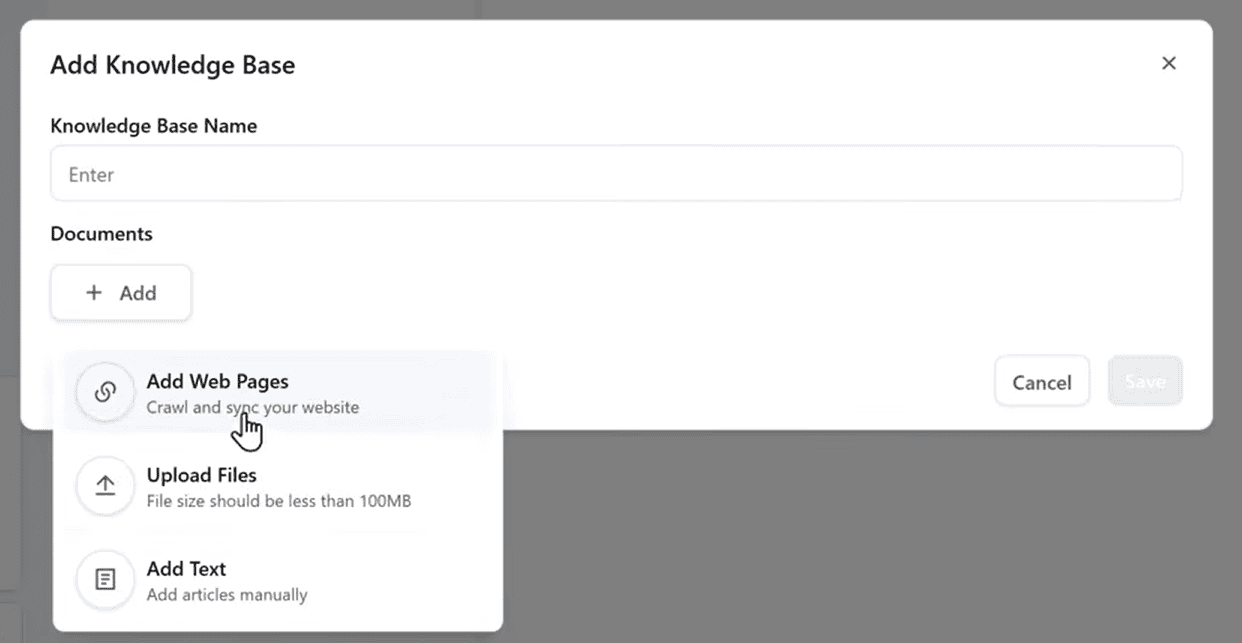 - AI accesses knowledge base to answer questions about your business accurately.