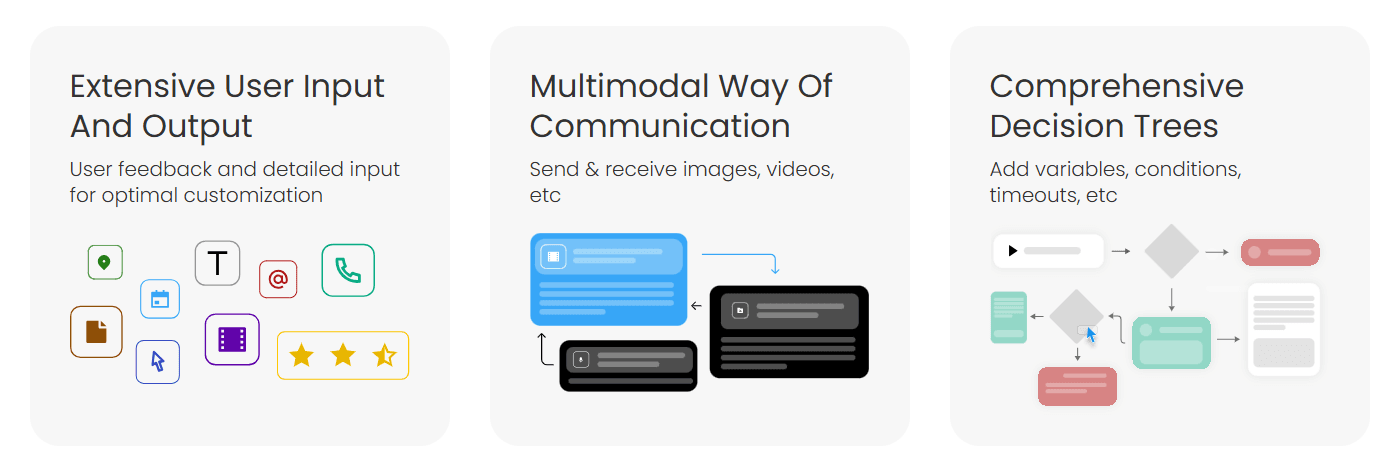 Use advanced messaging formats like interactive buttons, lists, and carousels