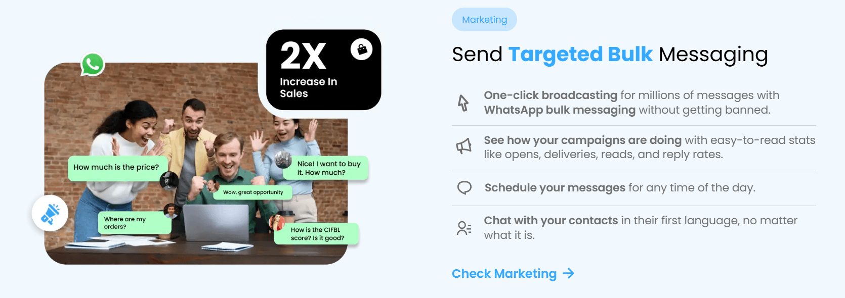 By contrast, the WhatsApp Business API eliminates these barriers. You can send unlimited broadcasts, integrate seamlessly with your systems, automate replies, and allow unlimited team members to collaborate through a shared inbox.