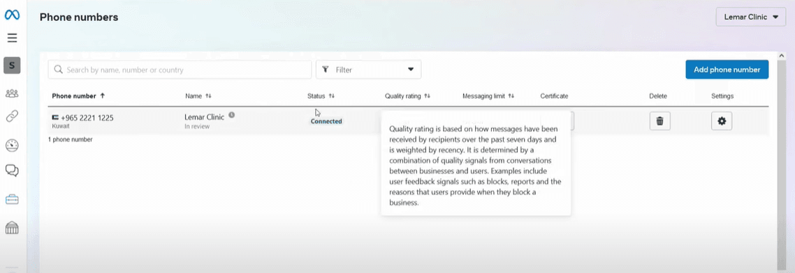 1. Check the phone numbers dashboard on your Meta Account
